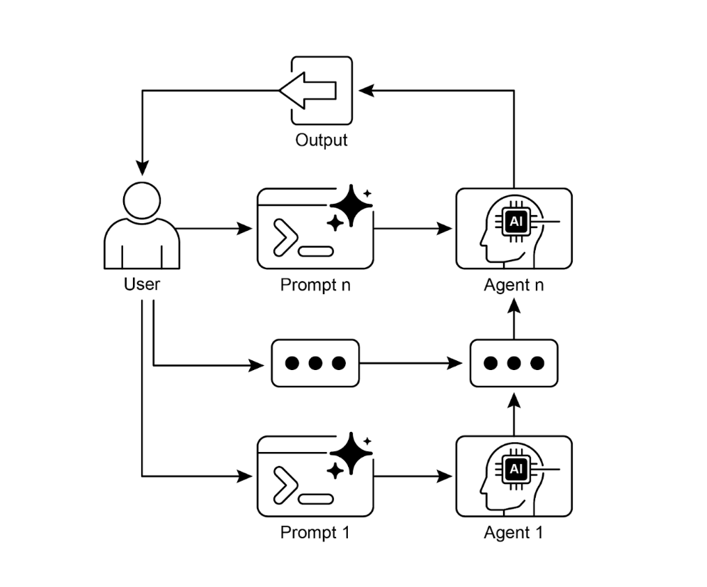 **图 2:**提示链模式:代理接收来自用户的一系列提示,每个代理的输出都作为链中下一个代理的输入。